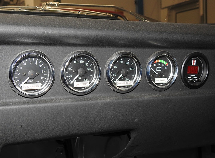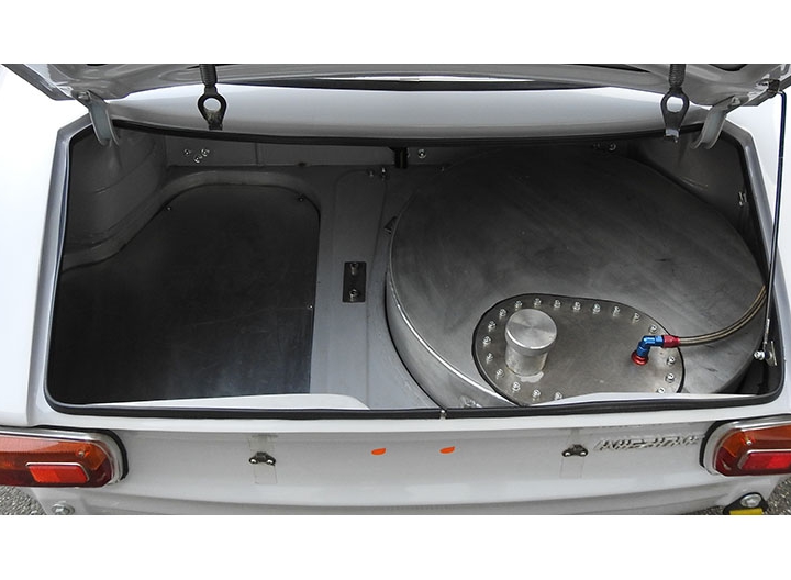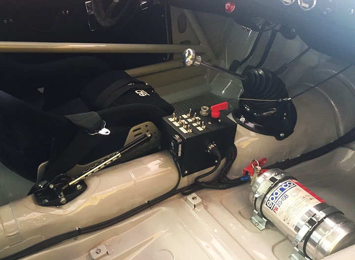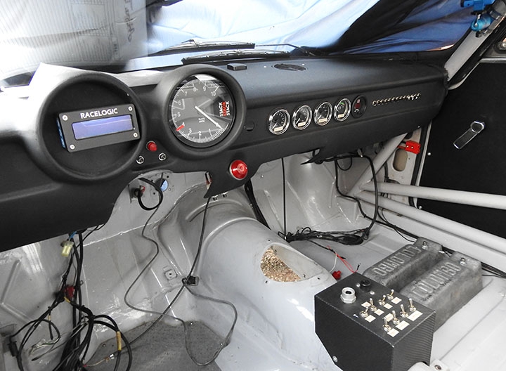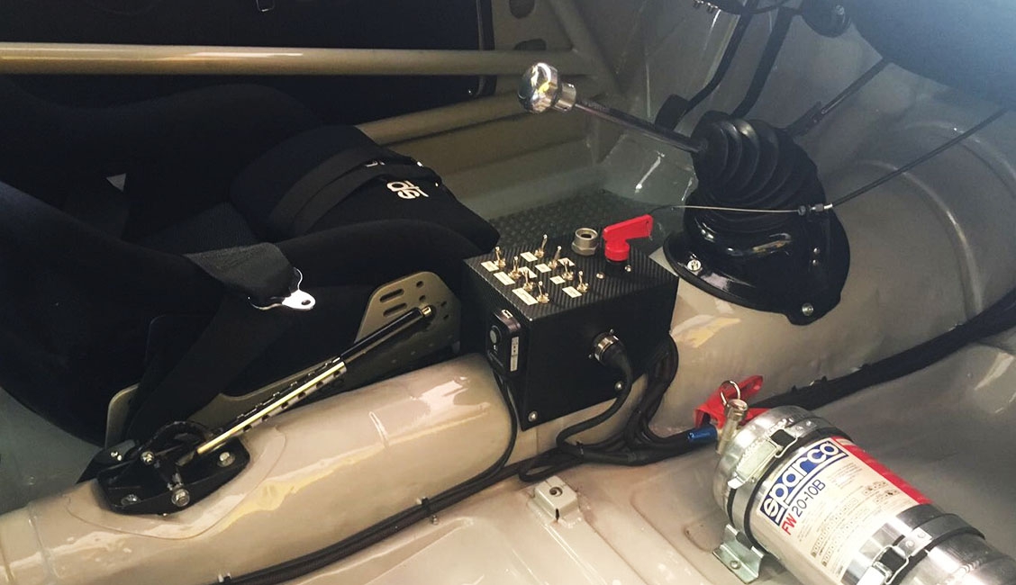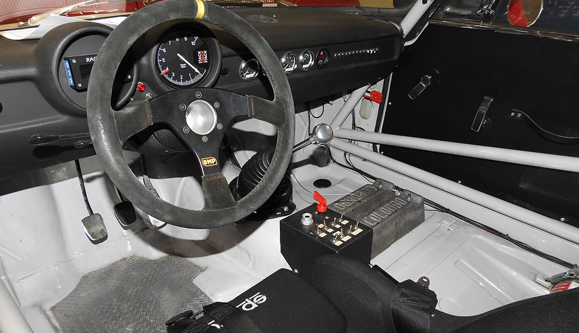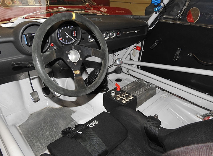 Inoltre, questo tipo di connessione offre maggiori garanzie di funzionalità e affidabilità, oltre che di rapidità, sia a fronte di frequenti interventi sia nelle condizioni spesso estreme dell’utilizzo racing. L’impianto è completato dalla console, posta sul tunnel centrale, che raggruppa i pulsanti delle varie funzioni e lo staccabatteria. Sempre in tema di impianto elettrico, per garantire la necessaria energia anche in caso di massimo sforzo a cui viene sottoposto l’impianto, per esempio utilizzo tergicristalli e resistenza parabrezza termico oltre alle luci in caso di pioggia, è stato montato un alternatore di nuova generazione con capacità maggiore (90 A), mentre la batteria a gel è stata spostata al posteriore, in posizione centrale, per ottimizzare la distribuzione dei pesi. Infine, il cruscotto in vetroresina ospita una strumentazione completa: oltre al contagiri Stack con memoria, strumenti di pressione olio, temperatura acqua e olio, voltmetro e sonda lambda per verificare la correttezza della carburazione, che viene scollegata in qualifica e gara come richiesto dal regolamento.