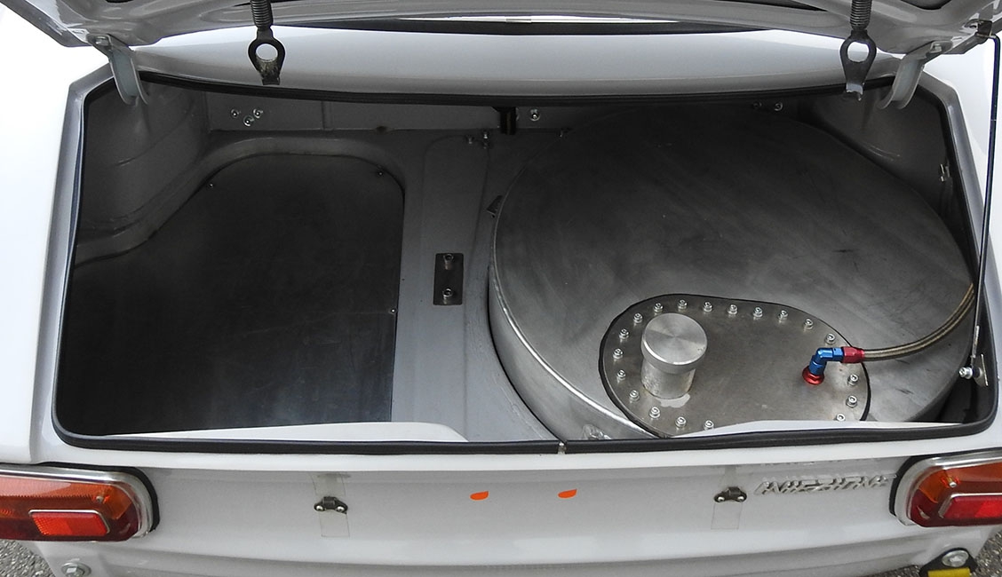 Per garantire la massima autonomia anche per le gare endurance, è stato fatto realizzare un apposito serbatoio in alluminio con spugna interna, alloggiato nel vano ruota di scorta per mantenere il baricentro in basso, della capacità di 80 litri. Questo è abbinato a doppie pompe elettriche, azionate singolarmente e posizionate nella parte inferiore della scocca come sulla GTA, che pescano benzina direttamente dalla parte inferiore del serbatoio, a sua volta svasato con una sorta di piccolo contenitore, così da garantire il pescaggio di tuta la benzina contenuta. A completare la dotazione di bordo, sedile e relative cinture racing, volante racing ed estintore brandeggiabile. Come illustrato, in fase di preparazione della vettura è stata posta particolare cura anche all’alleggerimento di tutti i particolari ove possibile, realizzando allo scopo molte parti speciali. Ne è risultata una vettura “dimagrita” fino a 857 kg, ben al di sotto del peso minimo fissato in fiche a 920 kg, questo ha consentito di distribuire ben 63 kg di zavorra nelle posizioni migliori per ottimizzare il bilanciamento generale della vettura, ottenendo un abbassamento del baricentro e la perfetta parità laterale, con peso medio del pilota a bordo, e un rapporto longitudinale di 2/3 a favore dell’anteriore.