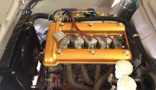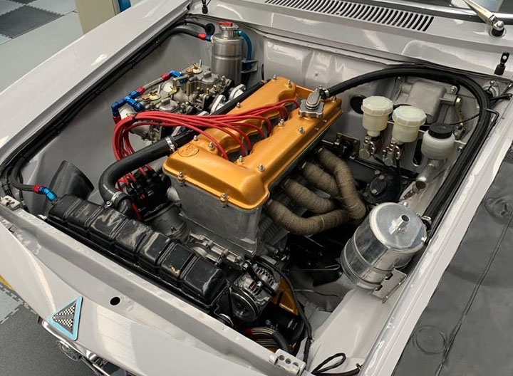 Lo spinterogeno Bosch originale è stato modificato nelle rampe di anticipo, con una sorta di sensore optoelettrico, ovviando così alle problematiche legate alle normali puntine. Inoltre sono stati adottati cavi siliconici e, ovviamente, candele di tipo racing. Per evitare diatribe legate all’utilizzo del radiatore acqua in alluminio, è stato fatto realizzare un radiatore in rame simile all’originale ma con spessore maggiorato, così da avere maggiore massa radiante. L’altra differenza riguarda la mancanza del tradizionale tappo superiore, posto invece sulla vaschetta a parte. A fianco del radiatore acqua, in posizione verticale, è stato aggiunto il radiatore olio, in alluminio. L’impianto di scarico è composto da collettori singoli in acciaio inox e del tubo e terminale, del diametro di 60 mm, con uscita posteriore. Dopo varie evoluzioni questo tipo di motore è arrivato ad erogare 195 CV a 7.200 giri/min. con una coppia di 210 N/m a 5.000 Giri/min.