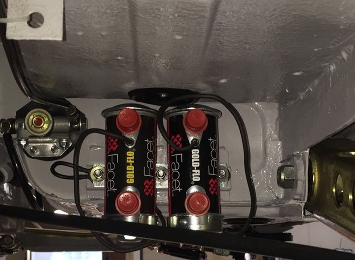 L’assemblaggio della vettura è iniziato con il posizionamento dei tubi, tutti ad alta tenuta con treccia esterna metallica e connessioni di tipo aeronautico, dei vari circuiti, idraulici per quanto riguarda alimentazione, lubrificazione e freni, così come dei cavi e accessori dell’impianto elettrico. Questo è stato realizzato ex novo utilizzando cavetti argentati, di sezione e peso minore grazie all’ottima conducibilità, con fusibili a riarmo e connettori di tipo aeronautico, in modo tale che possano essere rapidamente asportati (e poi ricollegati) vari elementi, tipo console o cruscotto, lasciando posizionato tutto il resto dell’impianto.