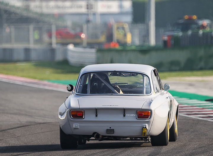 Questa vettura, preparata da zero da Alfa Delta nel 2017, rappresenta lo stato dell’arte per una Alfa Romeo GTAm. Una preparazione ai massimi livelli, con una cura quasi maniacale di ogni particolare. Un modus operandi di Roberto Restelli, che viene dalla sua preparazione e precedente attività lavorativa nel settore aeronautico, dove nulla può essere lasciato al caso con una costante ricerca del meglio che può offrire la tecnologia sul mercato per quanto riguarda ogni componente. Prova ne sia che nel corso della costante evoluzione della vettura i tecnici Alfa Delta hanno sperimentato entrambe le versioni di motorizzazione disponibili per la GTAm: il tradizionale quattro cilindri 2.0 litri, che ha raggiunto la bellezza di 195 CV, e la versione “testa stretta” che ha consentito di incrementare la potenza fino a 217 CV. Alfa Delta mette infatti a disposizione dei clienti questa vettura con la possibilità di scegliere tra le due differenti motorizzazioni, considerando il fatto che la versione “testa stretta” ha dei maggiori costi di gestione dovuti alle più frequenti revisioni di cui necessita.