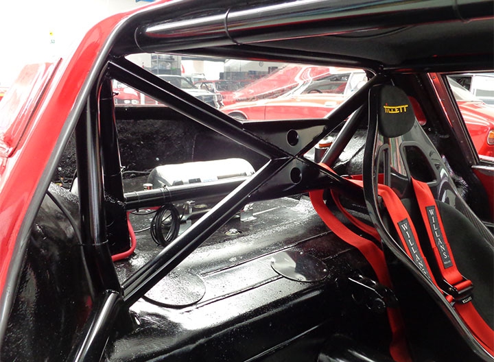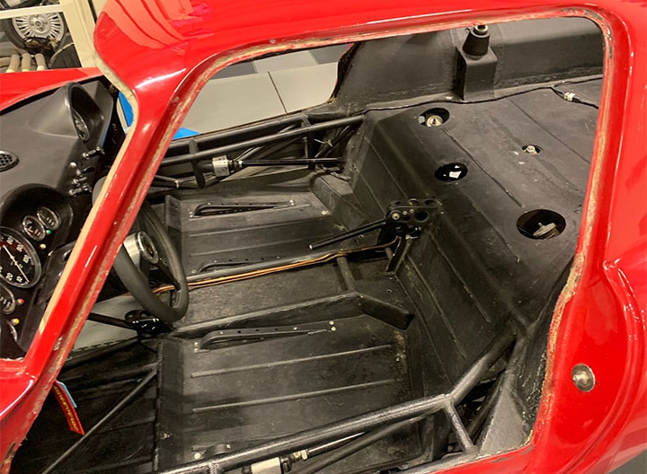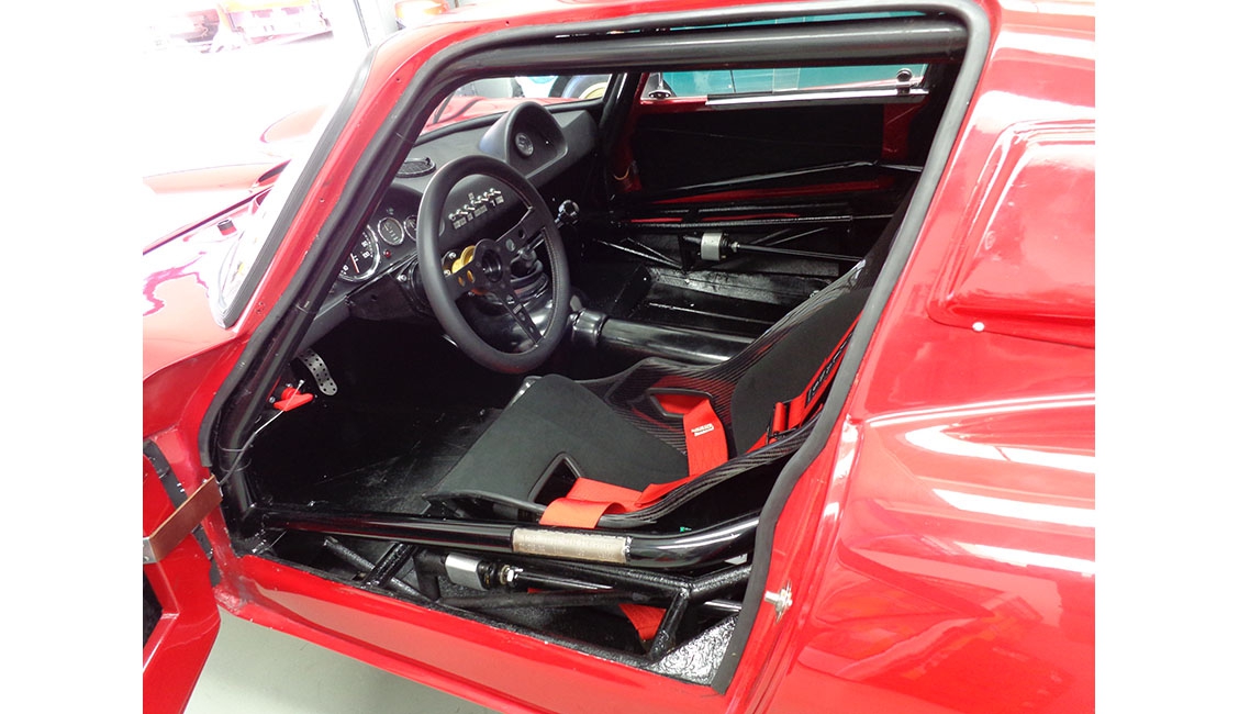Innanzitutto, per poter schierare la vettura nelle competizioni era necessario montare la gabbia di sicurezza omologata, operazione decisamente complessa sia per lo spazio ridotto all’interno dell’abitacolo sia perché la parte centrale della carrozzeria in vetroresina è fissata, in alcuni punti “annegata” come veniva fatto all’epoca per irrigidire l’insieme, al telaio tubolare con pannelli in lamiera saldati sul fondo.