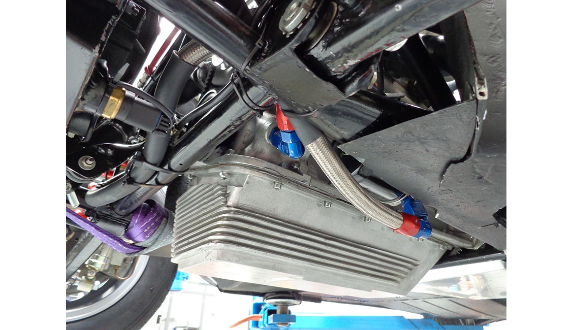 Data la particolarità della lubrificazione a carter secco è stato reperito, non senza difficoltà, lo speciale carter anteriore che alloggia le due pompe olio di pescaggio, dalla coppa olio al serbatoio, e mandata, al motore passando per il radiatore olio alloggiato nel convogliatore anteriore. Il carter recuperato, ancora grezzo, è stato lavorato, così come gli attacchi su serbatoio e radiatore, per adeguare il fissaggio dei raccordi aeronautici.