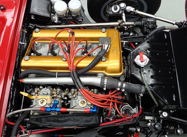 Dato che il vecchio motore montato sulla vettura oltre all’aumento anomalo di cilindrata, a 2.0 litri tramite l’utilizzo del cosiddetto “salamino” per le canne cilindri, presentava diverse altre incongruenze rispetto alla versione d’origine, i tecnici Alfa Delta hanno optato per la preparazione ex novo di un motore, partendo da un monoblocco originale 1.6, per il quale è stato necessario realizzare vari particolari specifici date le soluzioni e l’alloggiamento sulla TZ2 del quattro cilindri a doppia accensione e lubrificazione carter secco, per il quale è stata mantenuta la speciale coppa olio originale.