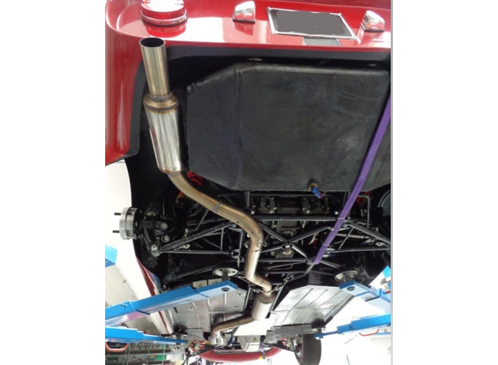 Realizzato ex novo anche l’impianto di scarico, in acciaio inox, con collettori singoli che si raccordano, con schema 4-2-1, nel tubo unico che termina con uscita al posteriore, invece che lateralmente, con silenziatore finale.