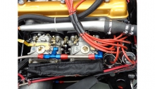 L’impianto elettrico, realizzato ex novo con cavetti argentati, più piccoli e leggeri e con maggiore conducibilità, è stato completato con le doppie pompe elettriche, un nuovo motorino per il tergicristallo e l’impianto di estinzione in alluminio. Gli strumenti originali Jaeger sono stati rigenerati, tranne per il contagiri per il quale è stato montato uno Jaeger elettronico in modo tale da garantire la massima precisione di lettura.