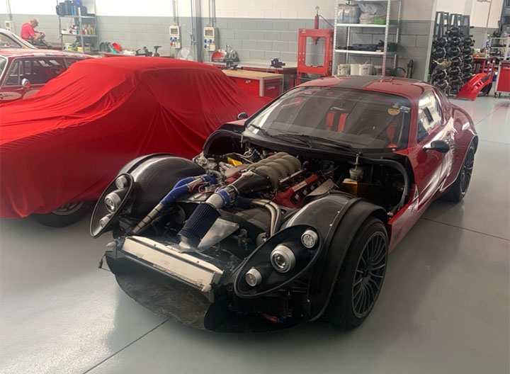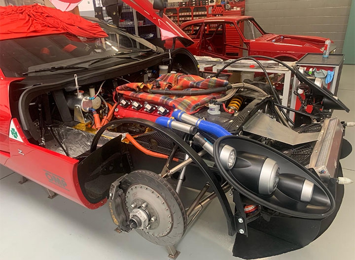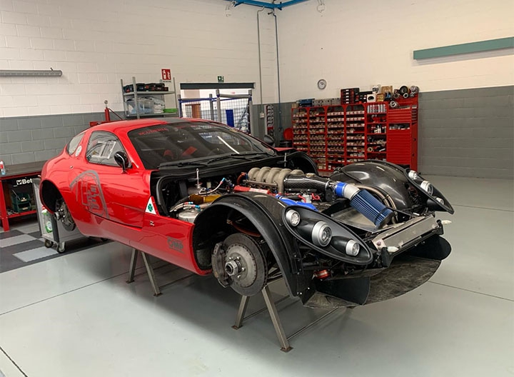 Inizialmente era stato montato un motore Alfa Romeo V6 3.2 Busso potenziato, poi sostituito dall’attuale V8 4,2 litri da 500 CV di derivazione Maserati. Il primo degli inconvenienti da risolvere riguardava una perdita di olio proprio dal motore. Ma per il poco spazio disponibile per intervenire, dato che il V8 è praticamente incastonato nella vasca anteriore, è stato necessario estrarre il gruppo motore e cambio dal vano anteriore.