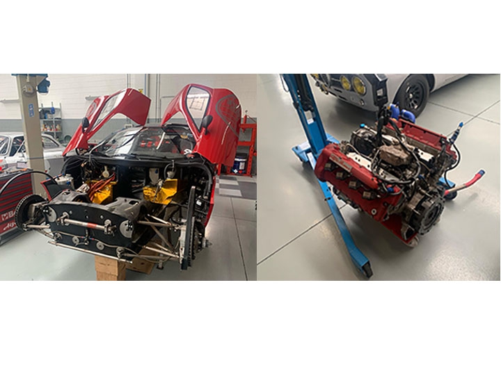 Verificando l’intero circuito di lubrificazione, a carter secco, è stato individuato un danneggiamento al serbatoio olio; tuttavia, per sicurezza sono stati sostituiti anche i tubi e le guarnizioni sul motore. Quindi, sostituiti lubrificante e filtri, oltre al blocco frizione, il V8 è stato portato in sala prova, presso Ellegi Motori che ne aveva curato a suo tempo la preparazione, per verifica e messa a punto. Allo stesso tempo il cambio sequenziale Tractive a 6 rapporti, che a sua volta accusava un non perfetto funzionamento ed una rumorosità anomala, è stato spedito presso la casa costruttrice in Svezia per essere revisionato.