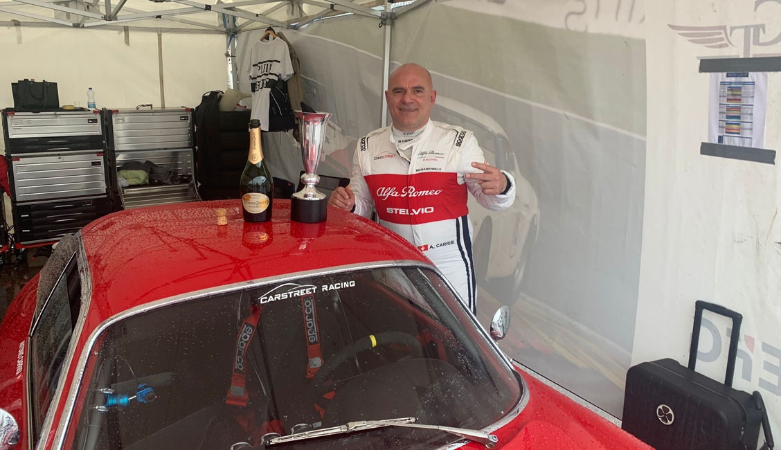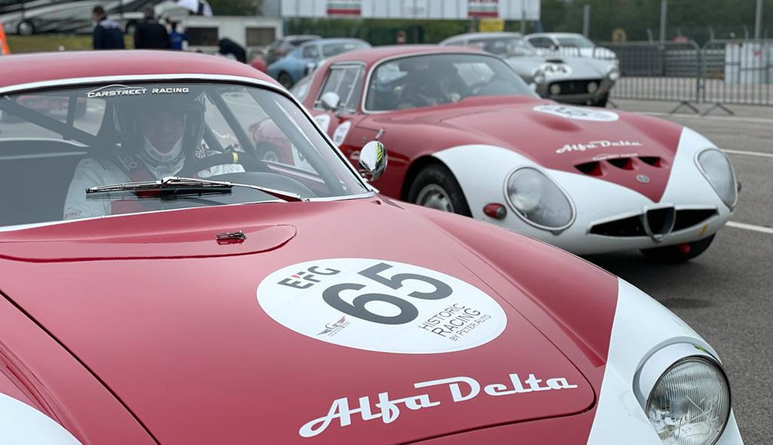 Conclusa con successo la “campagna francese” di Alfa Delta, che nel Grand Prix de l’Age d’Dor sul circuito di Dijon Prenois, è andata a podio in entrambe le gare del Greatest’s Trophy con entrambe le macchine schierate: due volte sul secondo gradino del podio in base all’Indice di Performance Antonio Carrisi, al volante dell’Alfa Romeo Giulietta SZ del 1961, mentre Jean-Luc Papaux e Roberto Restelli, titolare di Alfa Delta, si sono piazzati rispettivamente al 2° e 3° posto della categoria GTS10 con la Giulia TZ1 del 1963. Purtroppo un problema tecnico alla quinta marcia nelle battute finali di gara, ha fatto scivolare giù dal gradino più alto del podio Carrisi, comunque bravo a mantenere la piazza d’onore potendo utilizzare solo quattro marce.