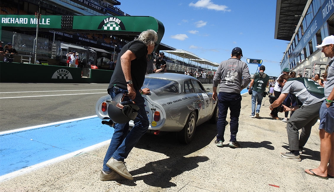 Essere al via alla Le Mans Classic vale già di per sé una stagione. Ma naturalmente la voglia vien mangiando, perciò poi ci si pongono gli obbiettivi successivi. Primo fra tutti, ovviamente, vedere la bandiera a scacchi! Che in una maratona come la classica francese, sulla distanza delle tre manche di un’ora ciascuna, di giorno e di notte, e su un tracciato dalle medie elevatissime dove si “tira il collo” a vetture con oltre mezzo secolo sulle spalle, non è affatto scontato!