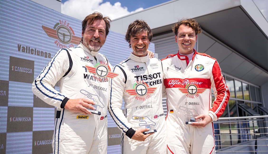 I due piloti svizzeri, al volante delle GTAm Alfa Delta #111 e #95, hanno lottato per tutto l’arco di gara scambiandosi spesso le posizioni, finché Kessel ha sorpreso Perfetti con un fulminante sorpasso all’ingresso della curva Roma andandosi a “prendere” per primo la bandiera a scacchi. Grande soddisfazione per il giovane figlio d’arte per questa prima vittoria nella serie dedicata ai Biscioni da corsa, anche perché maturata senza aver potuto prepararsi in precedenza. Ronnie, infatti, riesce a correre saltuariamente perché quotidianamente molto impegnato nella gestione dell’azienda di famiglia fondata dal padre a Lugano, che oltre ad essere concessionaria di grandi marchi come Ferrari, Maserati e Bentley si occupa di restauri, e dal team che fa correre con successo le GT del Cavallino in diversi campionati internazionali; perciò, quando si tratta di vetture Alfa Romeo si affida da sempre alla struttura varesina.