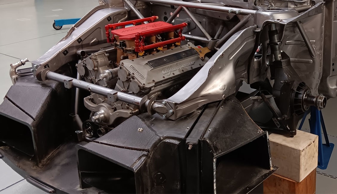 Nel frattempo, è stato completamente un altro esemplare di motore, oltre a quello montato in vettura per verificare gli ingombri, per eseguire una verifica completa di tutti i particolari meccanici, da eseguire in modo accurato date le tolleranze minime di montaggio del V6 Alfa Romeo in questione.