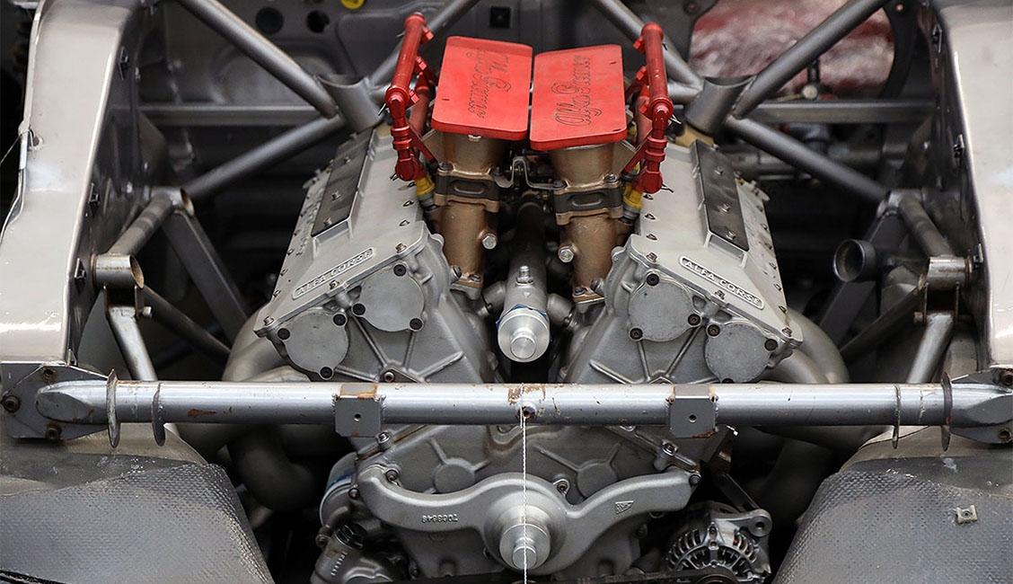 Il motore, come richiesto dal regolamento, derivava come angolo bancate e interasse da uno di serie. Inizialmente si pensava dal V6 2.5 “Busso” derivato dalla Montreal, mentre anni dopo l’ing. Limone pare abbia rivelato trattarsi del V6 PRV montato in origine sulla Lancia Thema V6. In ogni caso la meccanica era molto raffinata, con materiali e tecnologie a livello, anche in questo caso, di Formula 1: monoblocco e testate realizzate dalla Cosworth, con angolo a V di 60°, quattro valvole per cilindro, successivamente con richiamo pneumatico, e doppia accensione, lubrificazione a carter secco, per una potenza massima iniziale di 420 CV a 11.500 giri/min. La trasmissione era composta da un cambio sequenziale elettroidraulico a 6 rapporti, con bilancieri al volante, e la trazione integrale permanente era assicurata da un differenziale centrale a bloccaggio controllato elettronicamente e due differenziali autobloccanti regolabili, anteriore e posteriore, così come poteva essere variata la ripartizione della coppia tra i due assi.