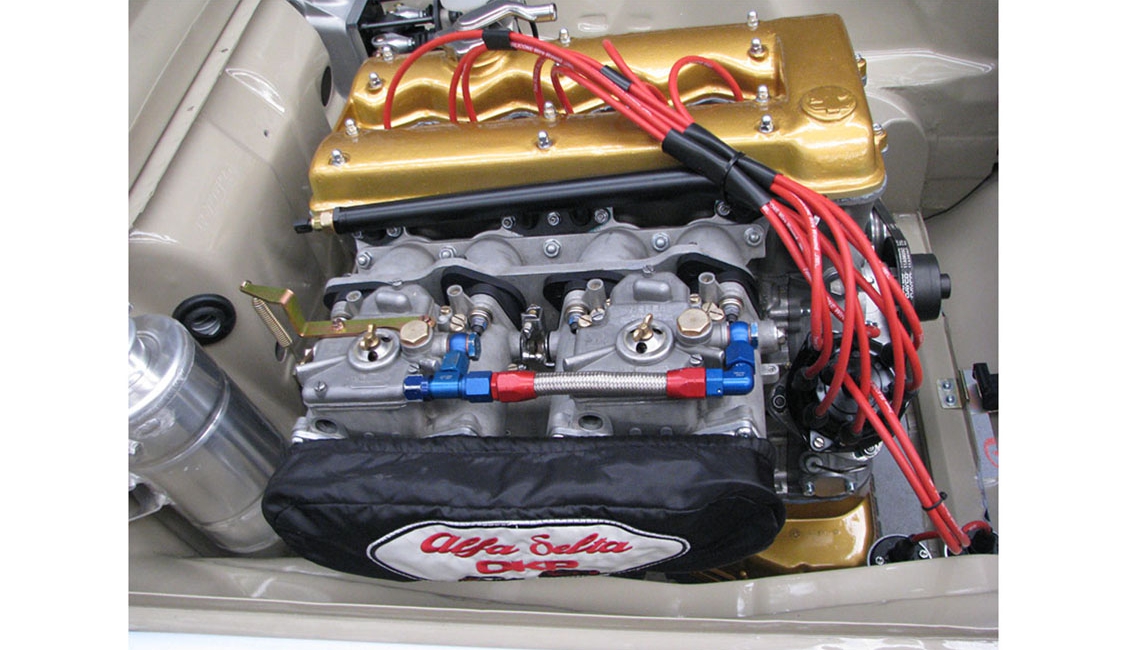 Come consuetudine Alfa Delta, la vettura viene allestita con la massima cura per ogni particolare, come possiamo apprezzare dalle immagini che oltre al vano motore mostrano anche i particolari alleggeriti delle sospensioni pronti per essere montati.