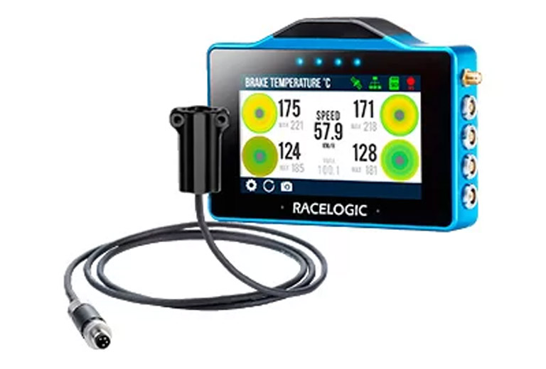 Misura, registra e visualizza la temperatura superficiale del disco del freno, fornendo informazioni preziose al collaudatore durante le sessioni in pista. Misura temperature superficiali da -20 °C a 1100 °C con visualizzazione in tempo reale tramite VBOX Touch.
